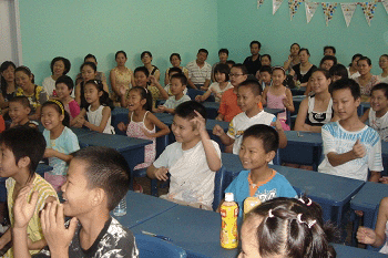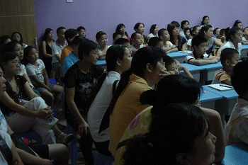 家长们将走道全都坐满了,听课的认真劲儿不亚于孩子们