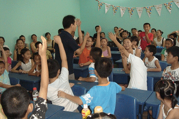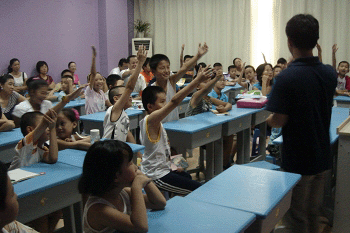 孩子们把手举得高高的,迫不及待要发言呢
