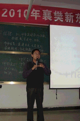 紧接着,新东方中学部教研组长、英语名师纪建镖老师以其博学多才的知识视野、幽默诙谐的语言风格,将整个招聘会的气氛带入高潮。纪建镖老师动情地给大家讲述他大学时期是如何通过自己的努力加入到新东方团队里来的。纪老师的亲身经历给了在座的同学们莫大的信心和勇气,同学们都摩拳擦掌,跃跃欲试。