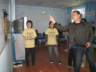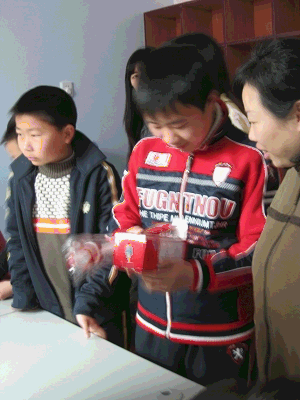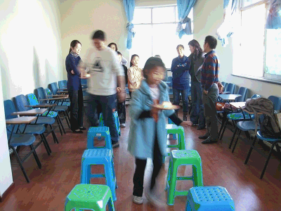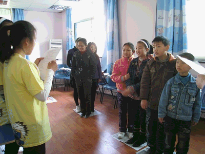 点燃烛火分享爱 “Come on! Come on!”还没走进教室里,就听见紧张的加油声从里面传来。推门而入,就看到一个小女孩儿正小心翼翼地用乒乓球拍托着乒乓球,用“S”形穿越了教室中间摆放的椅子,并把球成功运送到桶里。一个箭步冲到黑板前飞快地写下了一个单词,并返回让下一个小伙伴接上。原来,这个活动叫做“障碍接力赛”,同学们穿越“障碍”来写单词。在比拼速度的同时,也对同学们日常的英语学习中的单词储备提出了小小的要求。新东方一贯的寓教于乐的教学特色也在此得到了最充分的展现。