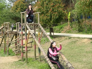 “小时候玩滑滑梯,今天黄家湾玩网梯”